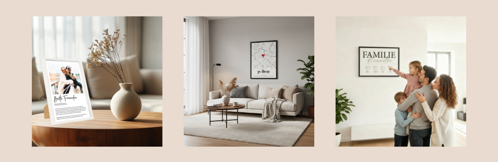 Kein Stress mit Fotodruckern oder der Suche nach dem passenden Rahmen – wir liefern Dir alles fix und fertig, mit Deinem Foto bereits eingelegt